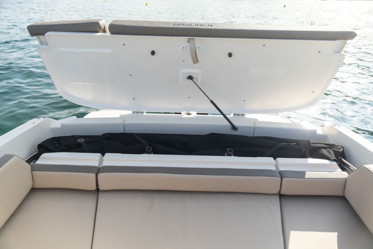 Den rummelige Bayliner VR6 Cuddy sætter en helt ny linje for daycruisere. Alle oplevelser inklusiv weekendturen for familien er indenfor rækkevidde. Det store cockpit med L-sofa giver fint plads til, at 5 personer kan sidde komfortabelt omkring bordet. Ryglænet til passagersædet kan vendes og konverteres til en lang solseng eller bagudvendt sofa. I kabinen finder du noget, som ikke er set før. Den rummelige V-køje med fuld liggelængde kan kombineres med en køjeseng, så kabinen i alt kan rumme 4 sovende.