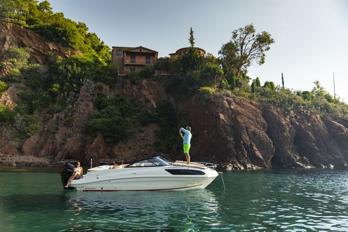 Den rummelige Bayliner VR6 Cuddy sætter en helt ny linje for daycruisere. Alle oplevelser inklusiv weekendturen for familien er indenfor rækkevidde. Det store cockpit med L-sofa giver fint plads til, at 5 personer kan sidde komfortabelt omkring bordet. Ryglænet til passagersædet kan vendes og konverteres til en lang solseng eller bagudvendt sofa. I kabinen finder du noget, som ikke er set før. Den rummelige V-køje med fuld liggelængde kan kombineres med en køjeseng, så kabinen i alt kan rumme 4 sovende. På fordækket er der indrettet to separate solsenge med indstilleligt ryglæn. VR6 Cuddy er en smuk og rummelig båd med masser af innovative løsninger.