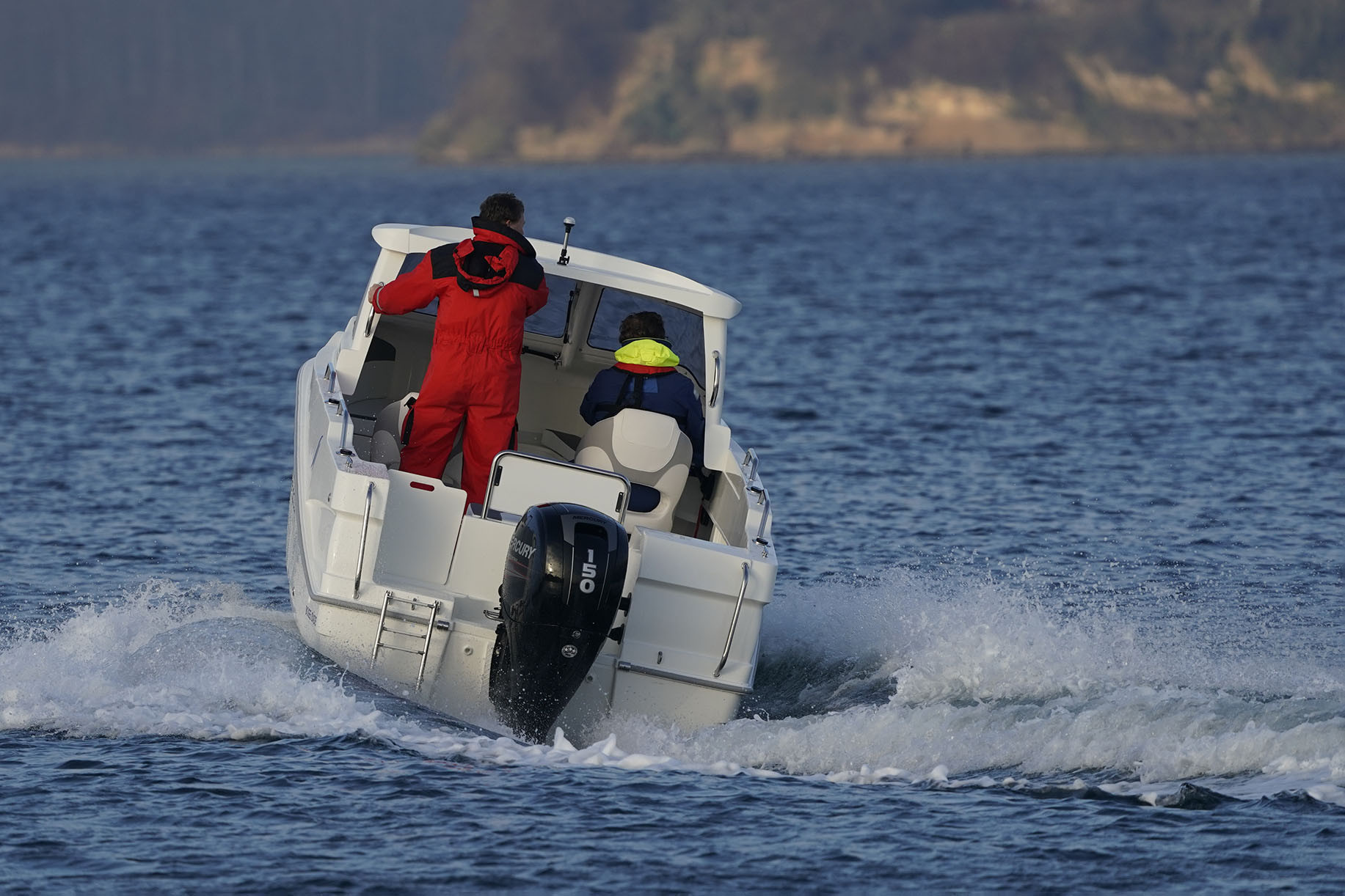 Selvdrænende, rummeligt cockpit giver ekstra sikkerhed, når I er mange ombord, og båden indbyder til hyggelige ture med eller uden fiskestang. Under cockpittet findes en komfortabel kahyt, og båden er som standard udstyret med 4 stangholdere, badestige samt mange muligheder for tør opbevaring.
