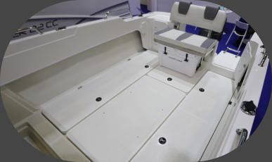 | Udstyr | Styrepult, navigationslys, badestige, ankerrulle, 7 håndtag, 2 formstøbte stole, 4 stangholdere, 4 pullerter, kontakt panel, 130l brændstoftank, ankerbrønd, automatisk lænsepumpe, mekanisk styring og rat, kabinelys. |