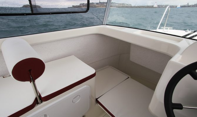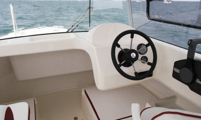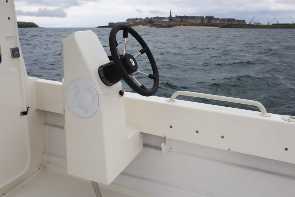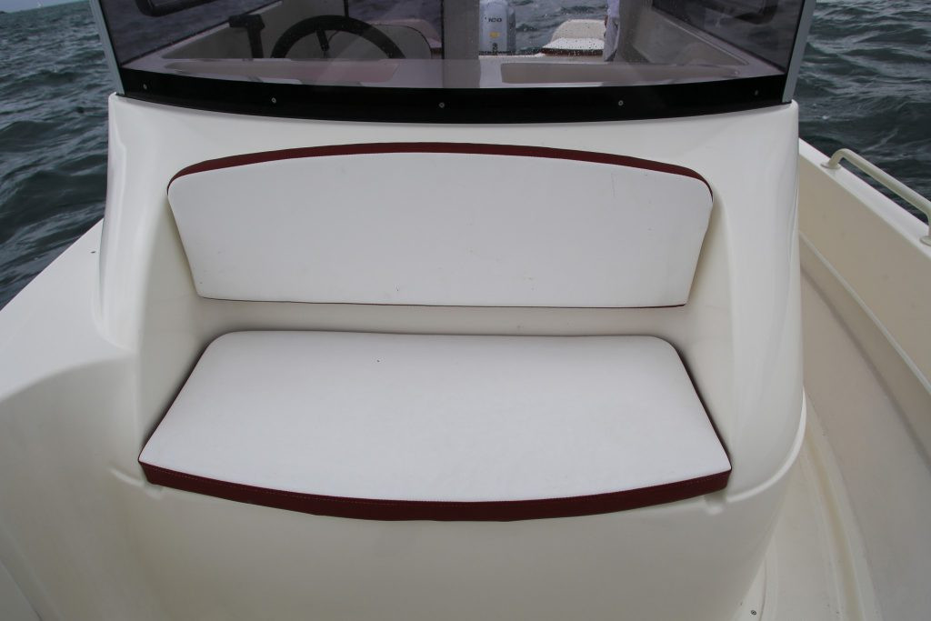 | Udstyr | Ankerrulle, mekanisk styring og rat, elektrisk lænsepumpe, manuel lænsepumpe, 4 stangholdere, opbevarings stangholdere, stævn øje og to øjer agter, aflåseligt styrehus, førersæde sæde med dreje sokkel, et bænksæde, et nedfældeligt sæde, kemisk toilet, agn |